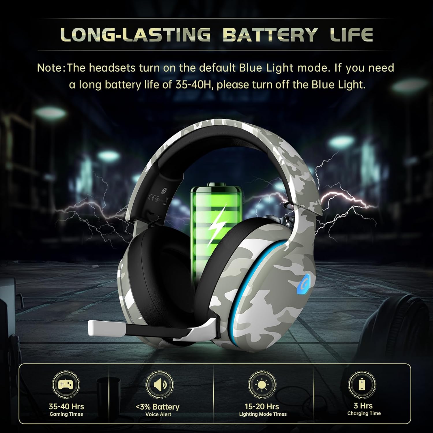 Switch seamlessly between wireless and wired mode with the included 3.5mm cable, allowing you to game without interruptions. The sleek camo design adds a stylish touch to your gaming setup.