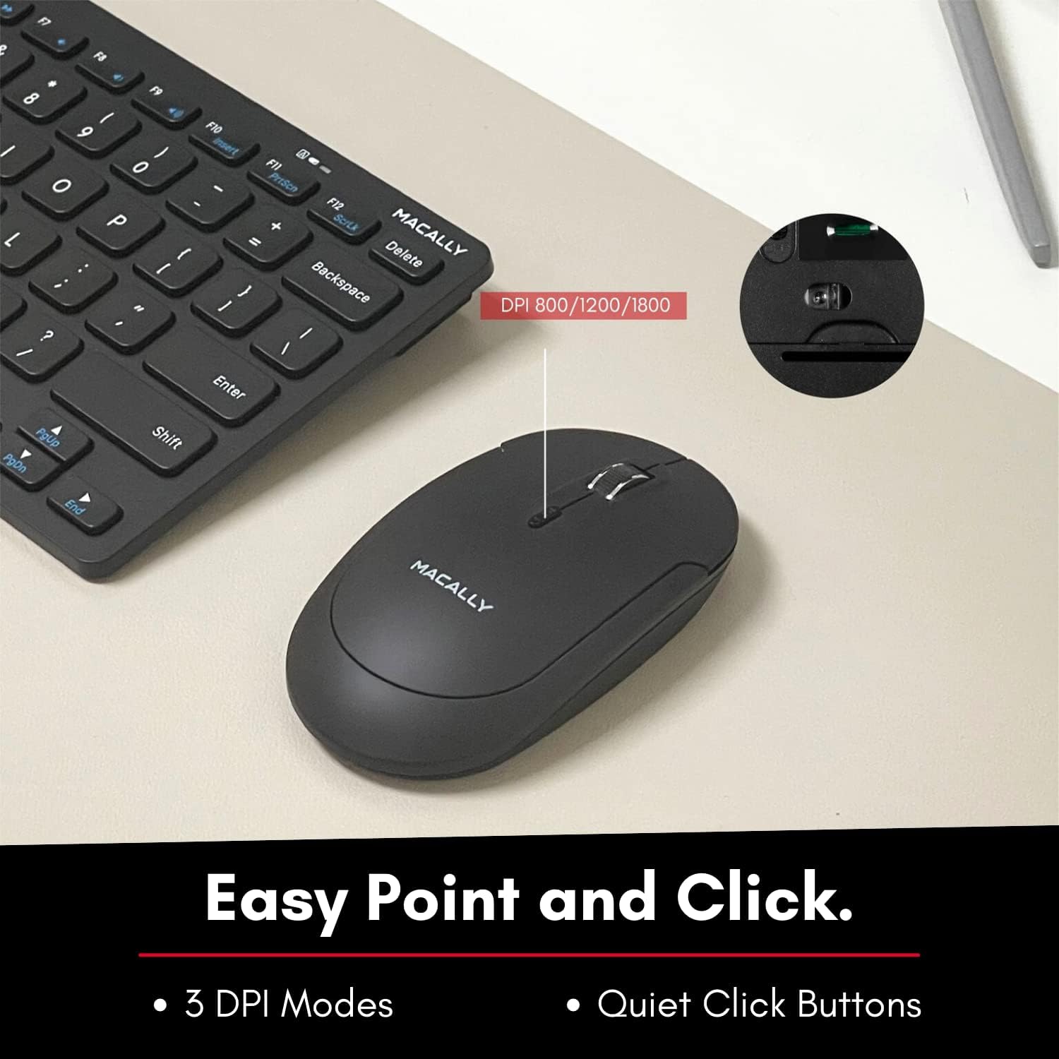 Whether you’re working on spreadsheets, typing up documents, or browsing the web, the Macally Small Wireless Keyboard and Mouse Combo for PC is the perfect solution for all your computing needs. Upgrade your workspace today with this reliable and efficient duo.